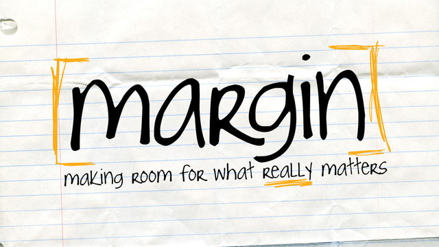 Margin does not mean that I will not love any less, care any less, or have less compassion in my life or in my calling. It just means I need to find the space to take care of myself. Otherwise I will not be able to love my wife, my children, or others as I need to (and want to) love. Margin is that space in your life that you purposely rest, take time to renew and to recharge. We all need it!